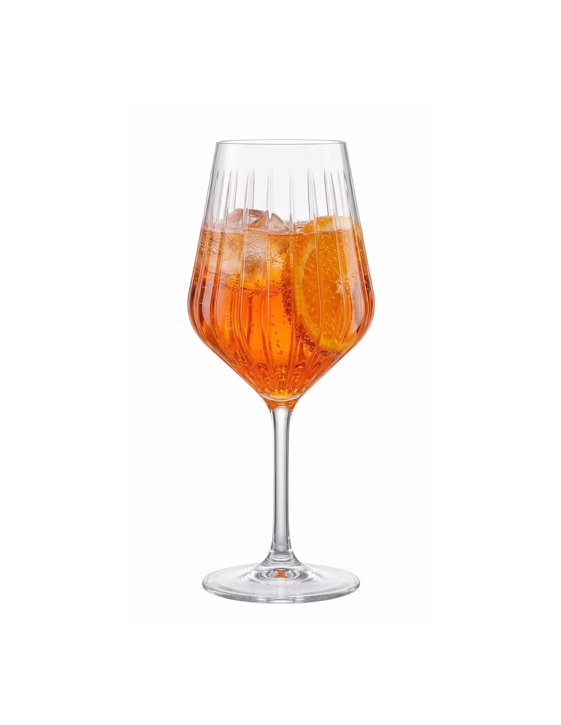 It is distinguished by its bowl with faceted lines that create a refined play of reflections, enhancing the color of the drinks and making the presentation more scenic than the classic smooth glass.